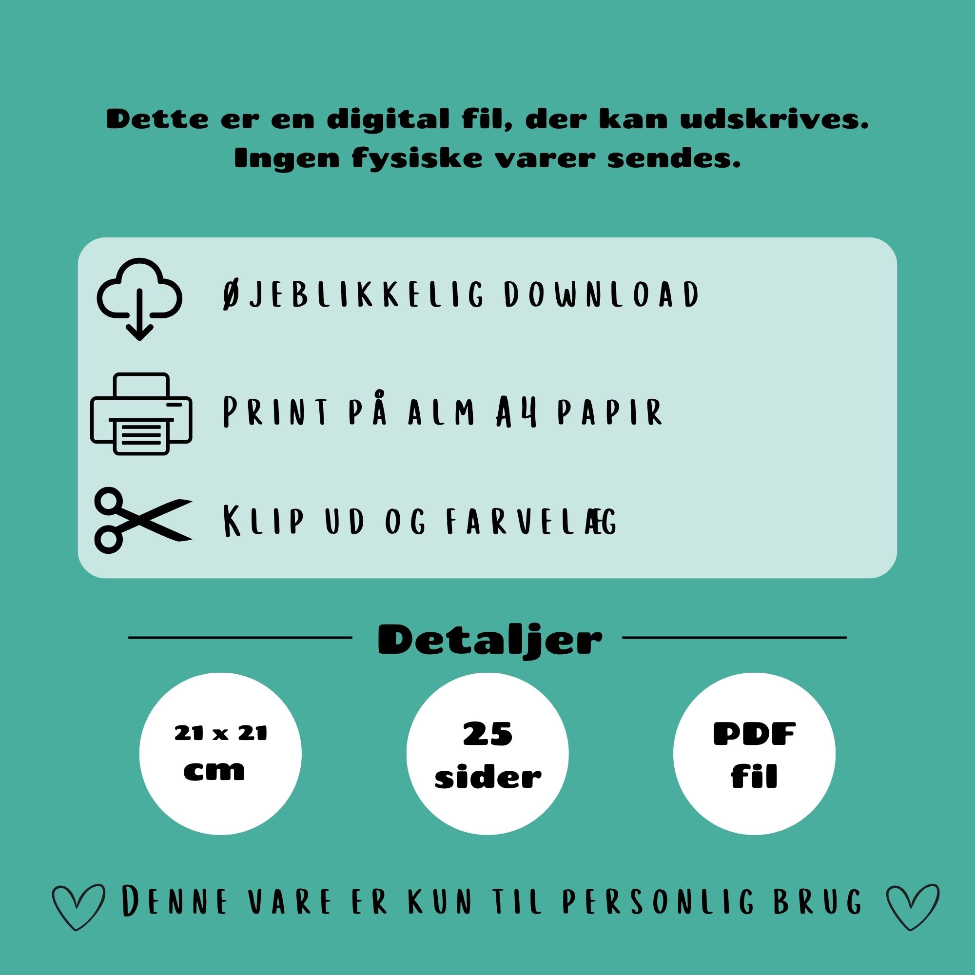 1 PDF-fil med 25 malebogssider og 5 ekstra sider sĂĄ du kan lave din egen bog