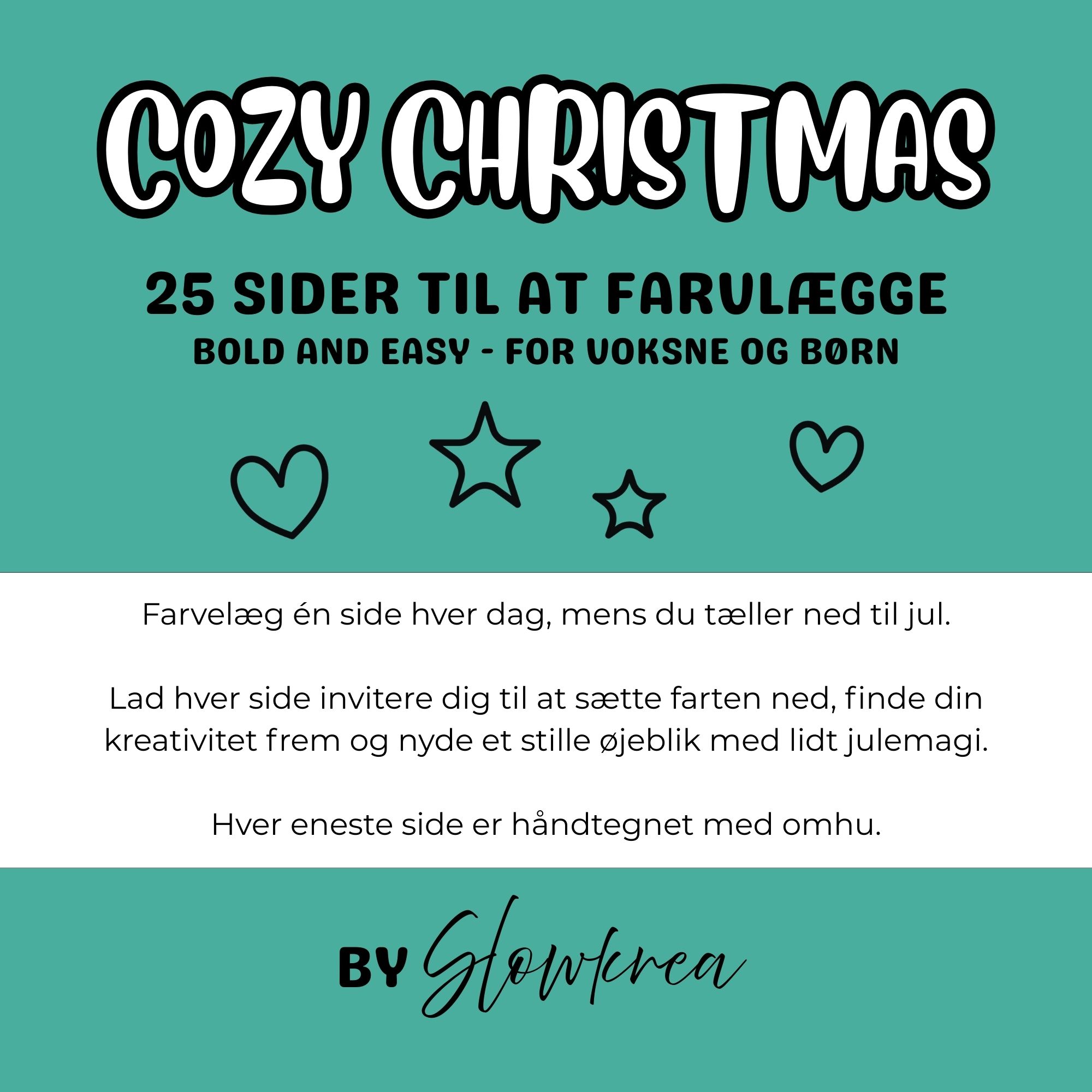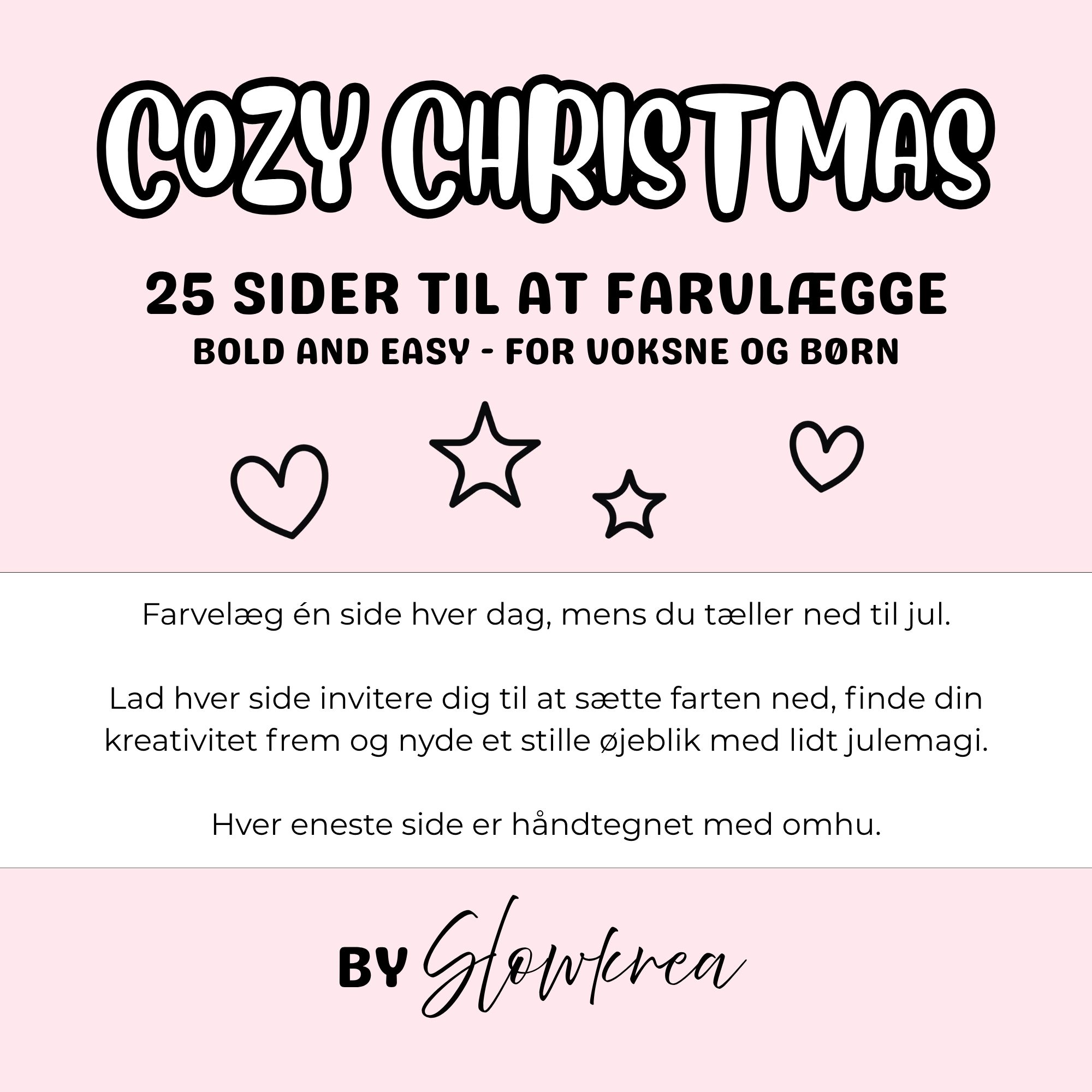 Farvelæg en side hver dag, mens du tæller ned til jul. Lad hver side invitere dig til at sætte farten ned, finde din kreativitet frem og nyde en stille stund med lidt julemagi. Sæt dig godt til rette, find dine yndlingsfarver, og bring disse hyggelige julemotiver til live! Perfekt til både voksne og børn.